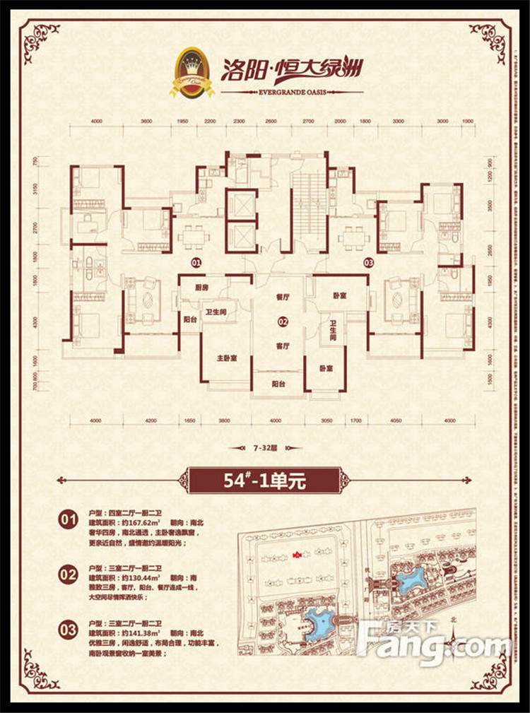 恒大綠洲項(xiàng)目位于洛陽市瀍河區(qū)洛陽市東出口,洛河以北、中州東路兩側(cè)、二廣高速以西,項(xiàng)目獨(dú)享洛河北岸3500多米河岸線,且處于洛陽市城市東西中軸線中州路東段,臨中州路街面長(zhǎng)2000余米,有多路公交車直達(dá)。恒大綠洲全部項(xiàng)目占地面積約1338畝,規(guī)劃建筑面積近301萬平方米,居住單位2.06萬余戶,除居住建筑外,項(xiàng)目?jī)?nèi)還配置了運(yùn)動(dòng)中心、綜合樓(會(huì)所)、幼兒園、小學(xué)、中學(xué)、商業(yè)配套、五星級(jí)酒店等,整個(gè)項(xiàng)目建成后,將形成約6.6萬人的居住規(guī)模。全部項(xiàng)目累計(jì)總投資超過100億元人民幣,預(yù)計(jì)上交稅收超過15億元人民幣。