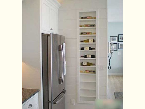 小小櫥柜的功能還能加大再加大,再旁邊加長厘米長的空間,就能延伸出一道小小的藏酒區(qū)域,這樣一個既節(jié)約空間越幫助收納的小設計,怎么能不愛?!
