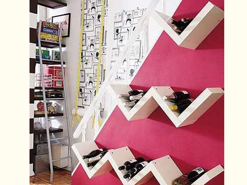 繼續(xù)利用墻壁空間,擱架一直是幫助墻壁實現(xiàn)收納功能的好助手,那針對于酒架,當然需要特殊造型的擱架,波浪形酒架則能很好的將美酒固定在架子上,不用擔心滾下來。