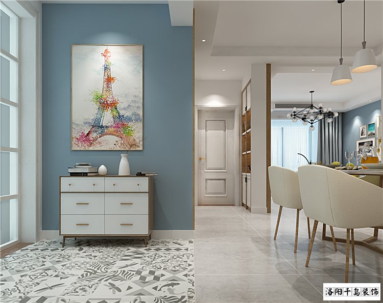 一對(duì)年輕的90后,喜歡色彩絢爛的空間,偏愛原木色的家具。鑒于小戶型空間面積有限,所以定義為北歐風(fēng)。整體色彩搭配冷色系為主,局部搭配跳色,深色的地板,結(jié)合灰色墻面,局部藍(lán)色,配套原木色加白色的家具。當(dāng)然,一面原木色飾面板結(jié)合雅士白石材的電視背景墻,更是畫龍點(diǎn)情之比,低調(diào)而不失高雅。