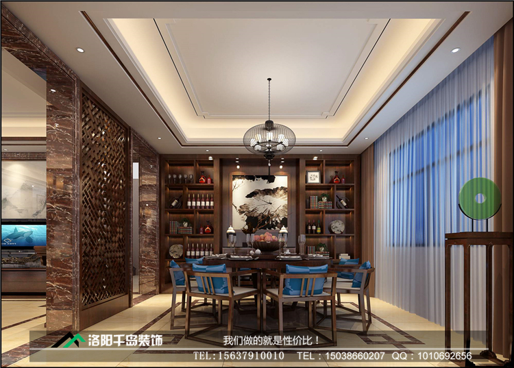 洛陽開元名郡225㎡復(fù)式新中式裝修案例@一樓餐廳
