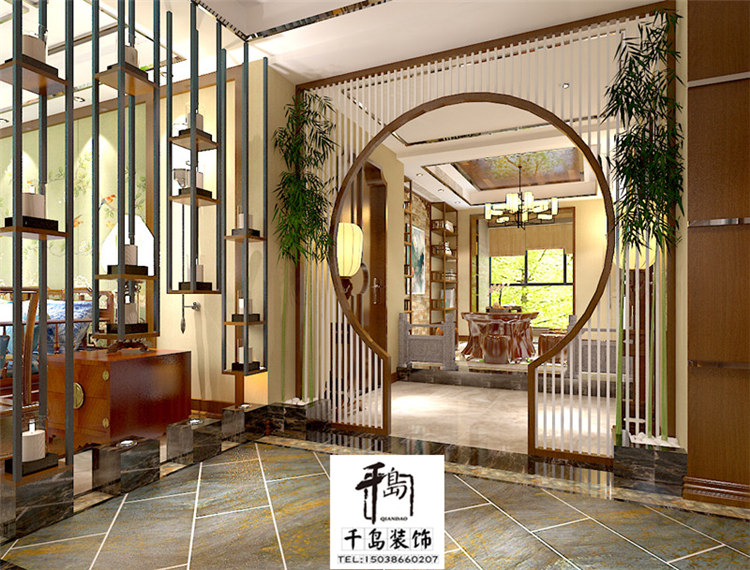 建業(yè)龍城200平米四室新中式裝修效果圖案例——入戶玄關(guān)裝修效果圖