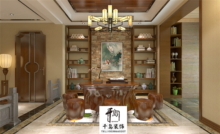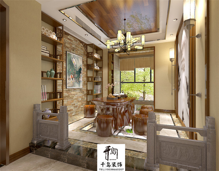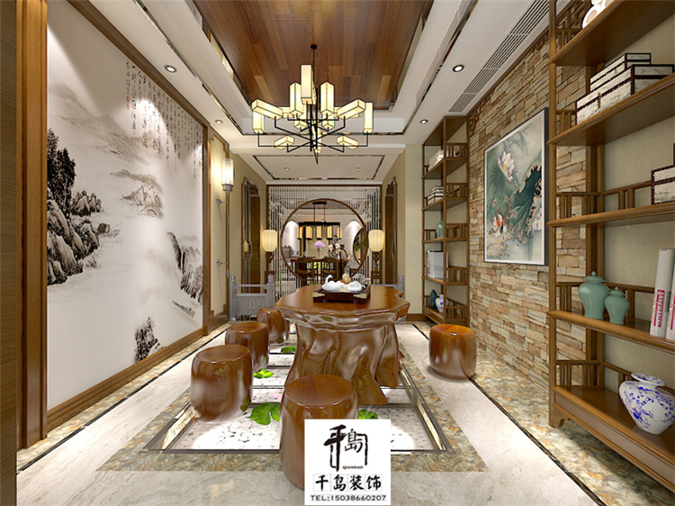 建業(yè)龍城200平米四室新中式裝修效果圖案例——茶室裝修效果圖