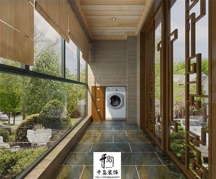 建業(yè)龍城200平米四室新中式裝修效果圖案例——陽臺裝修效果圖