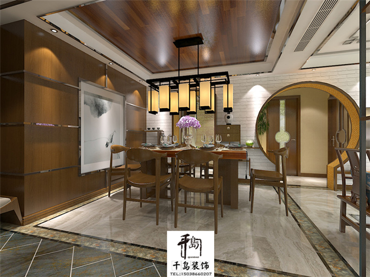 建業(yè)龍城200平米四室新中式裝修效果圖案例——餐廳裝修效果圖