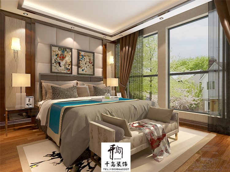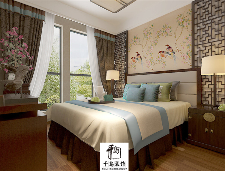 建業(yè)龍城200平米四室新中式裝修效果圖案例——臥室裝修效果圖