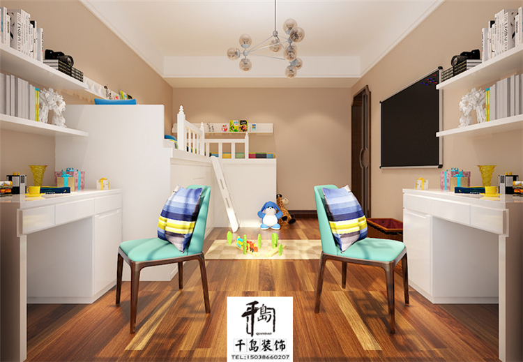 建業(yè)龍城200平米四室新中式裝修效果圖案例——兒童房裝修效果圖