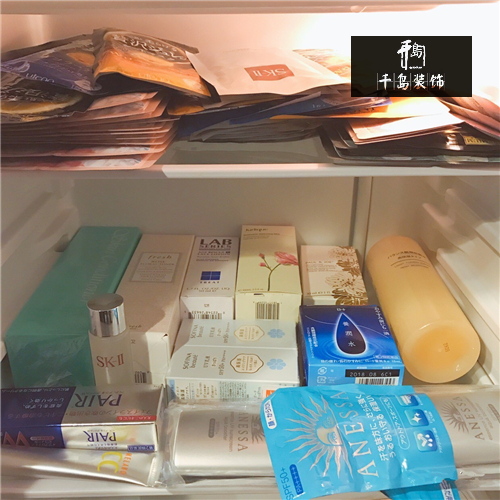 這個小冰箱專門用來放面膜和沒開封的護膚品,還有一些能及時拿的飲料和水,超級實用。