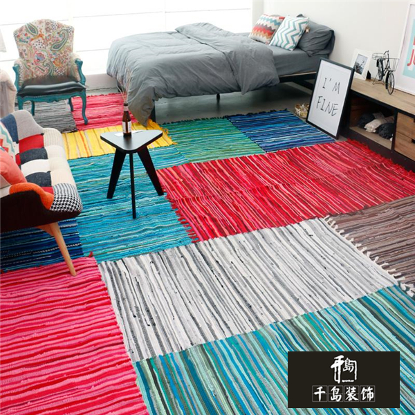 單人公寓小居室或臥室里如果要鋪設(shè)地毯,可以選擇滿鋪的形式,因為小空間里再分區(qū)就會顯得頭不是頭,尾不像尾,特別尷尬。用彩色的手工編織棉條滿鋪起來能加寬視覺感,還能讓小屋子看上去更加溫馨。