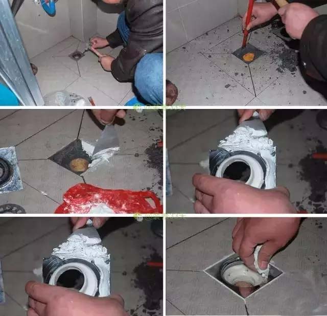 地漏拿出來(lái)之后,用塑料袋或者布之類的塞住下水管口,防止雜物下落,然后清理地漏坑四周的水泥。