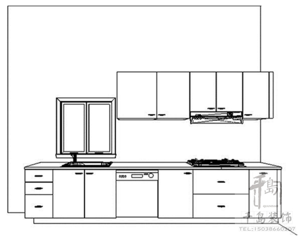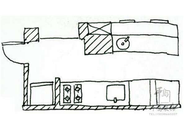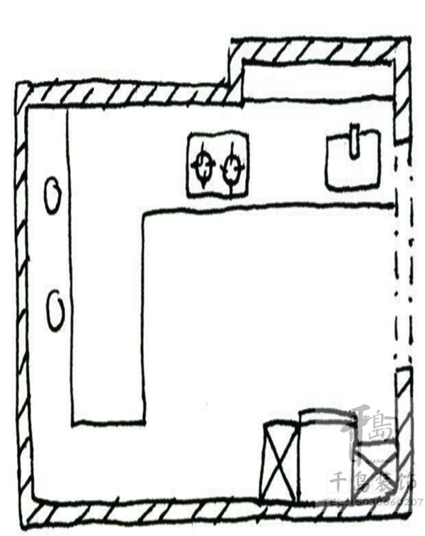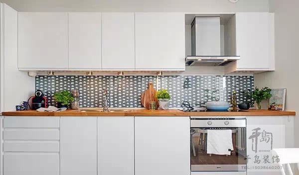 廚具主要是沿著墻面一字排開,區(qū)域劃分的重點(diǎn)為冰箱-工作臺(tái)-洗滌區(qū)-處理區(qū)-烹飪區(qū)-用膳區(qū),佳空間長(zhǎng)度大約為2公尺。由于空間的限制,櫥柜應(yīng)貼墻布置以適應(yīng)空間的特點(diǎn)和滿足功能的需求,烹飪用具不能過(guò)多,對(duì)櫥柜高度要仔細(xì)安置。