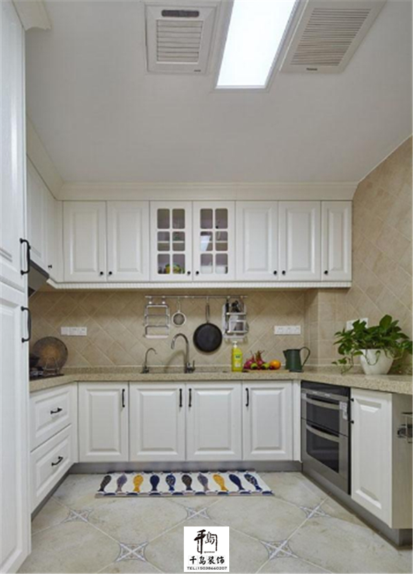 廚房是U型的設(shè)計,櫥柜也是很多啊,這么一來廚具餐具都不愁沒地方放了!