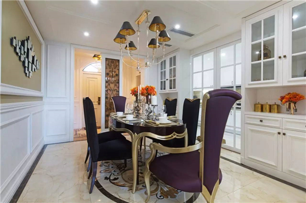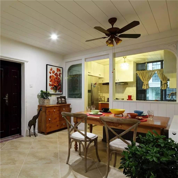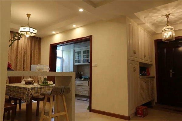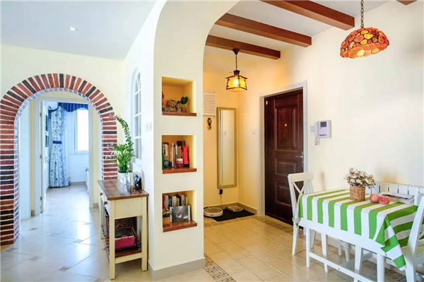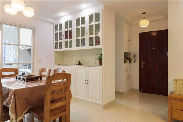 如果餐廳比較長的,可以裝一道屏風(fēng),避免入戶門直對(duì)餐廳;同時(shí)建議可以采用鞋柜隔斷,讓沒玄關(guān)的戶型隔出一個(gè)玄關(guān)空間的同時(shí)又能增加收納功能。