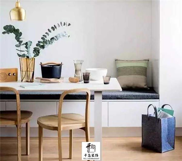 對于小戶型來說,做好收納是非常關(guān)鍵的??梢栽诳ㄗ牡撞看蛏瞎褡樱瑵M足了儲物的需求,又不會影響都整體的美觀度,幫助小戶型釋放了空間。小戶型裝修時,可以充分的借助墻面、轉(zhuǎn)角的空間,而這部分空間放置上卡座是再合適不過的。它可比餐椅實用多了,不服都不行。
