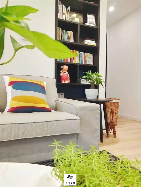 沙發(fā)墻即是在沙發(fā)的旁邊,做了一個(gè)嵌入式的壁柜,黑色的層板與白色的墻面形成一個(gè)視覺上的對(duì)比,看起來(lái)更有層次,重要的是也增加了家里的儲(chǔ)物需求;
