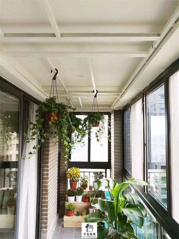 陽(yáng)臺(tái)頂面安裝白色的掛桿,既可以掛盆栽,還可以掛衣服,掛桿可以移動(dòng),衣服多時(shí)可以移到兩邊,也許,我們家里也可以借鑒這種“掛衣桿”。