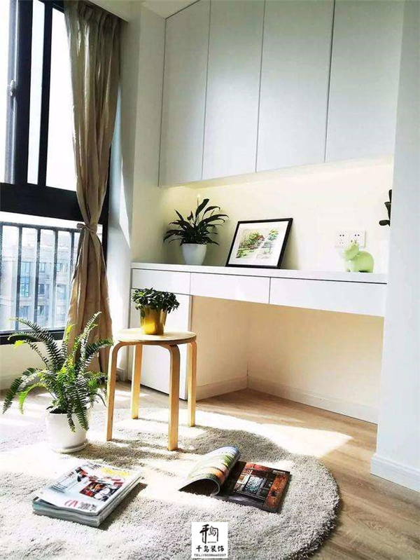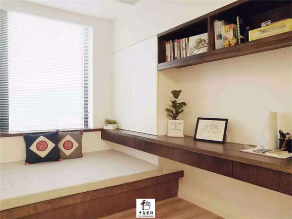 與主臥陽(yáng)臺(tái)不同,設(shè)計(jì)師把次臥陽(yáng)臺(tái)與臥室的墻打掉,合并到臥室,不僅擴(kuò)大了臥室的面積,而且也把陽(yáng)臺(tái)做成書房,方便小孩看書、做作業(yè);