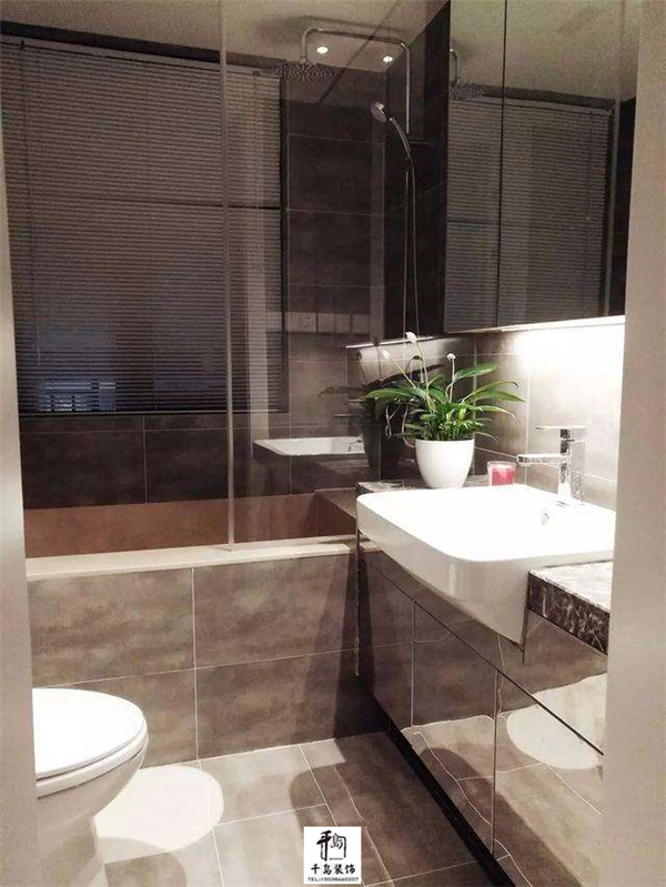 主衛(wèi),因臺(tái)面尺寸的問題,設(shè)計(jì)了懸掛式的臺(tái)盆,很好的解決了尺寸不夠的問題;