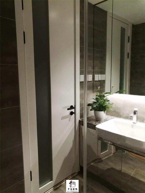 次衛(wèi)是個(gè)暗衛(wèi),沒有窗戶,所以選購(gòu)了一長(zhǎng)條磨砂玻璃的門,解決了采光問題;
